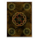 Geometric wheels of light and colour on a lacy background, reminiscent of leather and old-world charm.
