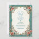 Step into timeless elegance with this vintage teal and gold floral arch wedding design. Featuring ornate architectural frames, blooming golden roses, and intricate turquoise patterns, this design is perfect for couples who adore a rich, romantic aesthetic. The warm vintage tones paired with detailed floral artwork create a luxurious and sophisticated feel, ideal for formal and destination celebrations.