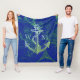 This nautical themed fleece blanket features a large anchor illustration on a blue background with an overlay of a vintage world map. The flag says "Welcome" at the bottom. Designed by world renowned artist ©Tim Coffey.