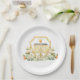 This round sticker features a royal crest at the top with a yellow chateau style building, and a royal crown surrounded by the crest border. The bottom of the crest has a floral arrangement and a banner where you can personalise with a name.