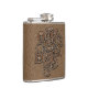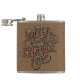 The flask itself is fine. It’s a cheap flask, obviously bought in bulk, however am prepared to overlook that. Given that it is a personalized item, I would have liked to have seen gift boxing instead of the generic packaging. Terrible printing, and/or quality. It’s a cheap, tacky vinyl. It is not cut straight and is also applied in a way that it is overhanging the bottom, causing the glue to catch on items and it will eventually roll and tear, damaging the wrap.