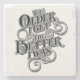 The coasters are gorgeous, a quality feel and heavy weight. They look like a precious archeological find. A rustic stone juxtaposed with a modern floral black and white print. I like the way the print goes slightly imperfect on the cut stone edges giving them a kind-of natural beauty.