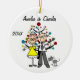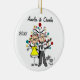 A pretty round ceramic keepsake Christmas holiday ornament features a stick figure elderly couple and a cat in front of a decorated Christmas tree with areas you can customise with names and the current year! This cute holiday keepsake ornament makes a great gift for grandparents, for a new elderly couple who just met in the current year, for couple's who have been together for 50 years!