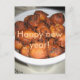 "Oliebollen" new year's card. Oliebollen are a typical Dutch new year's eve treat. Text: "Happy new year".