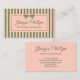 Retro striped business card in blush pink and olive green with a coquette little bow. The feminine look makes the business card perfect for beauticians, boutique owners, event planners, interior designers, makeup artists, hair stylists, jewelry makers, and more. Personalize with your name or business name in a pretty script.
