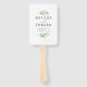 Olive branch watercolor painted wedding hand fan. Elegant painted design. Soft muted tones add a calm elegance to this wedding suite.