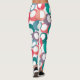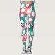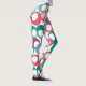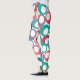 These leggings have mid-century modern design of circles in blue, teal, pink, purple and berry with white ovals inside.
