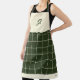 Olive Cream Grid Square Pattern Monogram Initial Apron