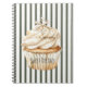 Olive Cream Stripes Snowflake Cupcake Christmas Notebook