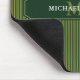 Monogrammed striped mouse pad for his office, with a retro design in a masculine color palette of olive green and dark hunter's green. Personalize the dark green mouse pad with name and initials.