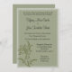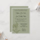 Wedding Invitation with a green flower graphic. The background is Olive green. Perfect for fall wedding invitations. Customise with your wedding information and details.