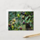 Olives are a Mediterranean delicacy found growing in all the countries that border the Mediterranean Sea and sub-seas. This fruit is typically grown organically, as the olive tree is very sturdy and strong. These green olives are ripening to black as they hang from the branch. This postcard is fully customisable.