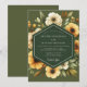 Embrace an earthy and elegant aesthetic with this stunning botanical design. A deep olive green backdrop provides a rich canvas for radiant golden yellow and creamy white blossoms. Delicate anemones and wildflower buds are nestled amongst lush, verdant greenery, creating a romantic meadow-inspired arrangement for your special day.
