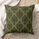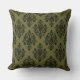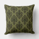 Olive Green and Black Damask Pattern Cushion