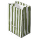 Olive green and white candy stripes medium gift bag