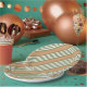 Olive green and white five stripe pattern with tan paper plate