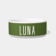 Olive Green and White Simple Elegant Name Cat Dog Bowl