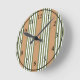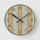 Olive green and white stripes pattern with tan round clock