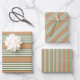 Olive green and white stripes pattern with tan wrapping paper sheet