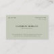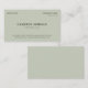Minimalistic olive green one-sided business card with dark green fonts against a muted light green.