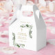 This modern elegant olive green floral first holy communion favour box can be personalised with your information in modern gold typography. Designed by Thisisnotme©
