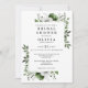 This elegant olive green and white floral bridal shower invitation can be personalised with your information in modern typography with your registry QR code on the reverse. Designed by Thisisnotme©