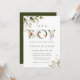 Olive Green Floral Botanical Letter Baby Shower Invitation