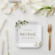 Olive Green Floral Botanical Letter Bridal Shower Paper Plate