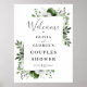 This elegant olive green floral couples shower welcome sign can be personalised with your information in modern typography. Designed by Thisisnotme©