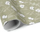 Olive green Floral Simple Line art White Flower Wrapping Paper