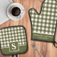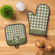 Olive Green Gingham Plaid Chequered Monogrammed Oven Mitt & Pot Holder Set