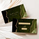 This elegant, modern wedding table reserved seating escort card features an olive green watercolor agate background trimmed with gold faux glitter. The front of the card provides space for the guest's name and table number in the form of gold-coloured rectangles. The word "table" appears in gold-coloured handwriting script. Customise the back of the card with the names of the bride and groom in gold handwriting script and the wedding date below in copperplate font.