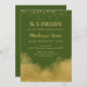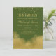 An elegant Olive Green and gold birthday invitation featuring gold confetti dust at the top and gold bling at the bottom.