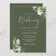 Olive Green Greenery Leaves Monogram Wedding Invitation