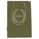 Olive green leaf oval wreath monogram wedding medium gift bag