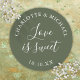 Olive green wedding favor love is sweet classic round sticker. Designed by Thisisnotme©