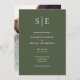 This chic minimalist wedding invitation can be personalized with your monogram initials and wedding day details on an olive green background. With your special photo on the reverse. Designed by Thisisnotme©