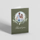 Elegant olive green wedding thank you card featuring a romantic photo framed in a soft watercolor botanical wreath. Delicate script typography adds a timeless and sophisticated touch, perfect for expressing gratitude after your wedding or special event. This minimalist yet refined design is fully customizable with your own photo and message, making it a beautiful keepsake for guests.