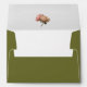 These lovely wedding invitation envelopes feature a chic and trendy olive green jacket, while the inside sports a lovely floral rose bouquet. Included are a contemporary set of fonts for return address.