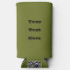 Seltzer Can Cooler Koozie Sleeve with customisable template Your Text Here typography printed with Olive Green Solid Colour background illustration and select products collection by TheFabricSeal print on demand shop at Zazzle.com #ZazzleMade https://www.zazzle.com/store/thefabricseal
