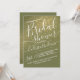 This elegant, girly, and chic wedding bridal shower party invitation is perfect for the trendy and stylish woman. It depicts a faux printed olive green sparkly glitter and colour ombre gradient with a custom cursive script typography setup. It's a glamourous, feminine, simple, and unique touch on a popular trend sweeping the design world. Enjoy this one-of-a-kind take on this classic design concept.