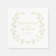 Unveil sophistication with our timeless bohemian wedding paper napkins, graced with a captivating Olive green and white tulip floral wreath. Customised with the names of the bride and groom, these napkins infuse a personalised charm into your wedding table arrangement.