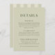 Elegantly modern and timeless, this striped wedding details card sets the perfect tone for your special day. Featuring soft pastel vertical stripes and a refined blend of classic serif and flowing script typography, this design brings together simplicity and sophistication, creating a clean, graceful aesthetic ideal for contemporary, romantic, or garden-themed weddings.
