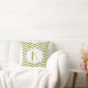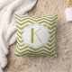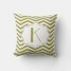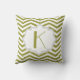 Olive green, white chevron zigzag pattern throw/toss accent decorative pillow with monogram in a grey frame.