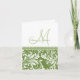 Elegant Olive Green and White floral Damask Thank You Wedding Cards with personalized monogram.