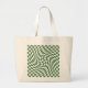 Olive Green & White Warped Chequered Pattern Large Tote Bag