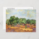 A fine art postcard featuring the post-impressionist work Olive Grove - Pale Blue Sky (1889) by the Dutch artist Vincent van Gogh (1853-1890), which portrays olive trees with Seurat-inspired brushstrokes set against a pale blue sky.