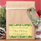 A border of green olive leaves with brown and green letters on a faux parchment background for your custom small business craft, soap or baking stickers, just add your name or text, even save your design for later