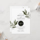 This design features olive leaves and branches. The beautiful greenery of the olive leaves compliment the elegant black modern circle shape encircling the wedding date. A perfect fusion of modern and chic with rustic olive colours. Olive green, black and white are a perfect match for a Mediterranean themed wedding. Unique wedding invitation design with modern elements. Matching wedding stationery items and other wedding invite formats are also available.