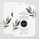 This design features olive leaves and branches. The beautiful greenery of the olive leaves compliment the elegant black modern circle shape encircling the wedding date. A perfect fusion of modern and chic with rustic olive colours. Olive green, black and white are a perfect match for a Mediterranean themed wedding. Unique wedding invitation design with modern elements. Matching wedding stationery items and other wedding invite formats are also available.